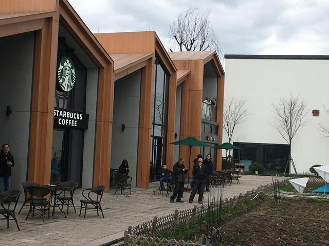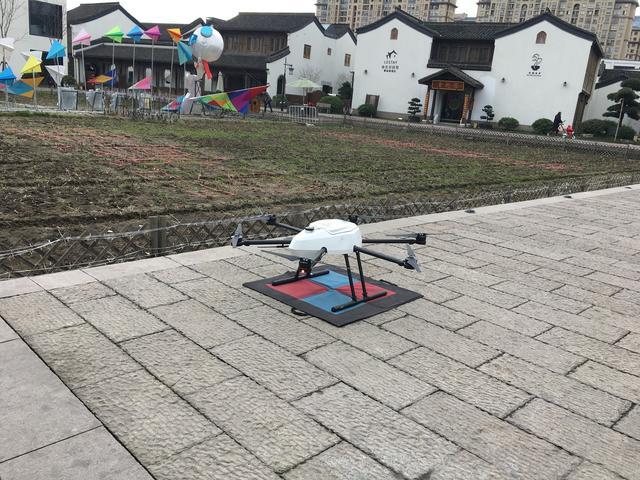 今天(2月28日)天气很好,杭州余杭梦想小镇星巴克门外的广场上,坐着很多散步晒太阳的人。地上停着一台白色无人机,路过的人三五成群围观议论。