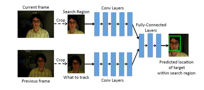 物体跟踪,指的是用户选择了要跟踪的物体后,如果该物体以后移动了、姿态变化了,依然能够将其找到并框出来。其中GOTURN[2]算法能够达到每秒100帧以上的处理速度。