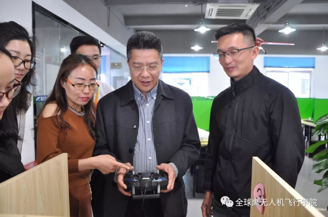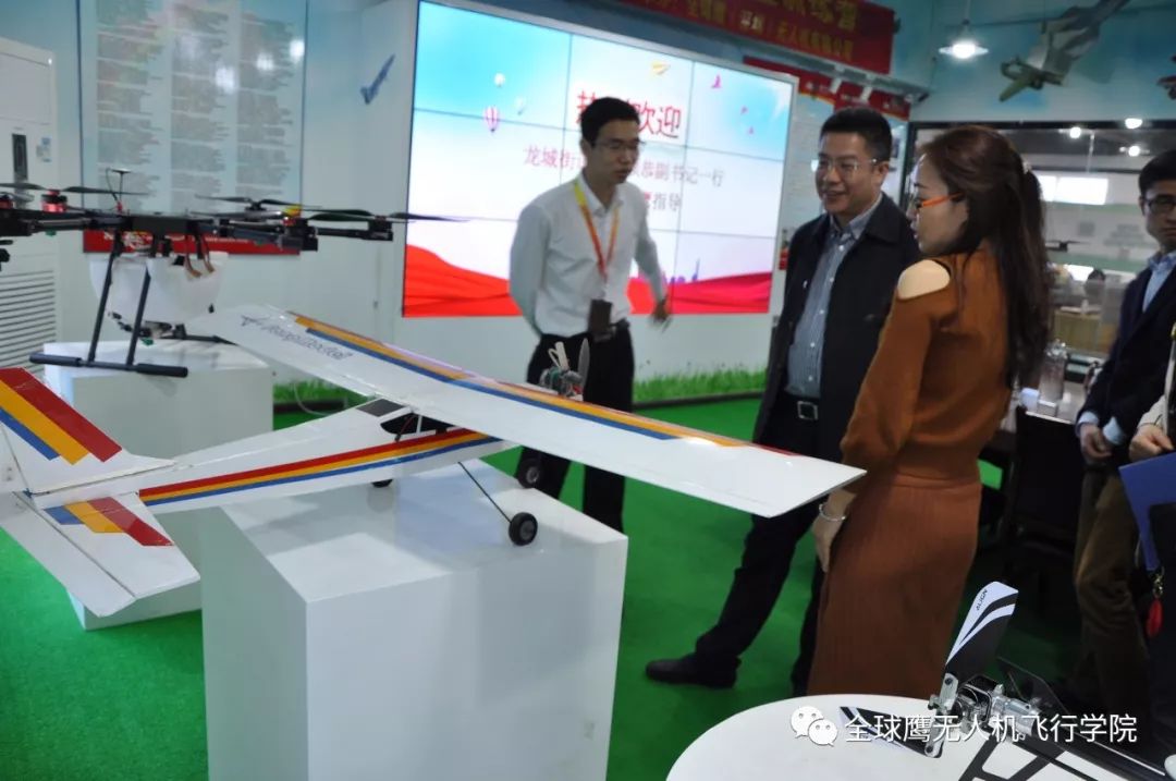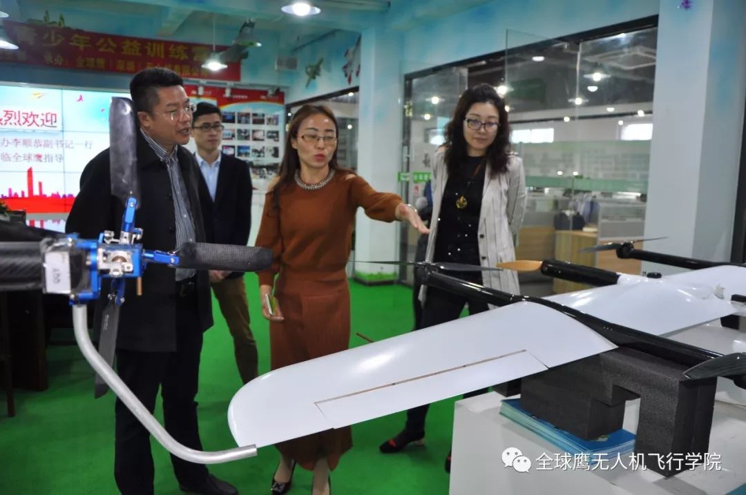 全球鹰董事长侯总为参观的领导讲解公司的工业级无人机以及培训无人机