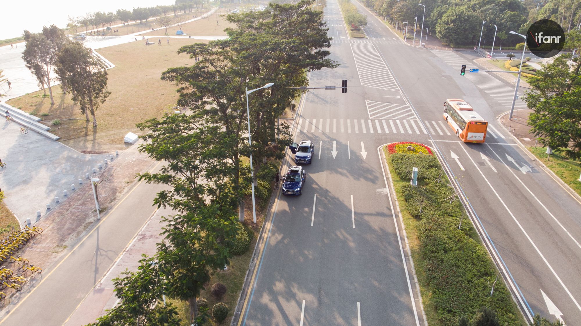 它的工作逻辑非常有意思——我们看到的的视频其实是源素材倒放的。这个选择很明显是受技术限制,因为如果飞机是从天上开始拍摄,仅靠 GPS 定位还很难顺滑地做到离拍摄对象越来越近的效果,所以只能基于视觉识别锁定拍摄对象,从近处起拍。仔细查看,就能发现问题所有「小行星」模式拍摄的十秒短视频,路人跟汽车都是倒着走的……