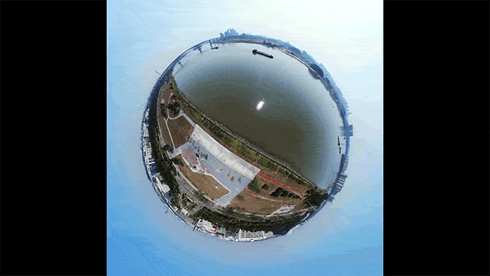 大疆还用这个球形全景给 Mavic Air 量身订做了「小行星」短视频,创意十足,最终呈现的效果也很流畅。