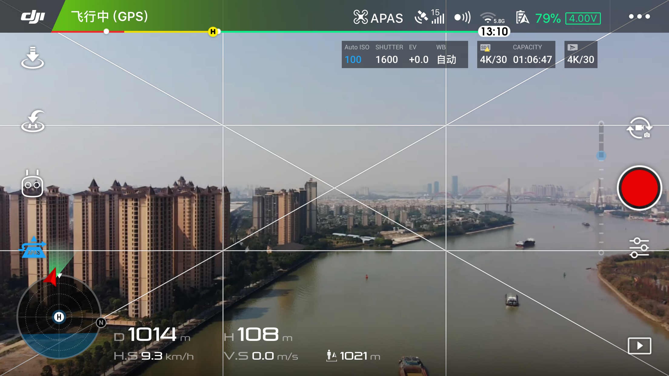 这次飞行在整个 Mavic Air 测评中占有重要地位,因为它非常明显地展示了增强型 Wi-Fi 图传如何在强大的信号干扰中挣扎。虽然此刻的图传已经不足以为飞手取景提供服务,但是我们可以在屏幕上看见彻底断线前的图传系统一直在尝试重连,飞手仍然可以根据图传幸存的画面手动控制飞机返航。重连速度是增强型 Wi-Fi 图传的大亮点,可以更大限度地保障飞行安全。