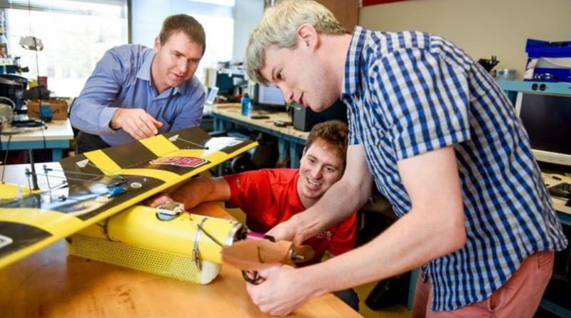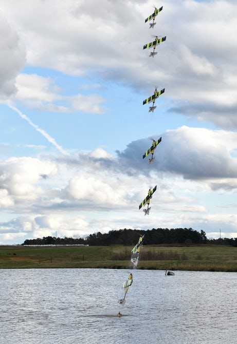 北卡罗莱纳州立大学( North Carolina State University )研究人员开发出了一台结合潜艇与无人机性能的固定翼无人机 EagleRay ,这台由 Teledyne Scientific 资助开发的无人机可同时飞行在天或潜行海底,预料用于跟踪和观察野生动物。