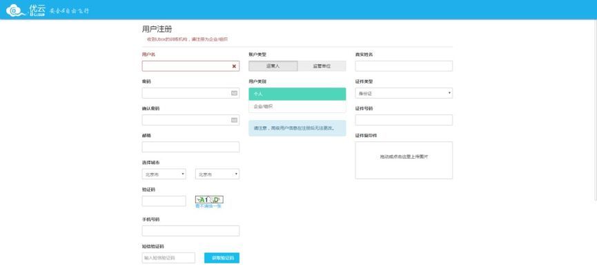 (1)登录网站 www.u-cloud.cn,点击右上角的“注册”进入注册界面