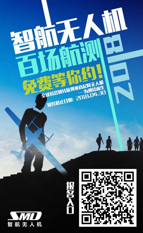4月13日,智航这款V系列小型便携式倾转旋翼无人机将正式在深圳公开发布,欢迎行业人士及媒体朋友前往参加,到时不仅可以解开这款新品的神秘面纱而且还有丰厚的大奖等着现场的幸运嘉宾进行抽取。最后,智航准备在2018年里进行全国百场航测活动,欢迎行业人士共同加入。