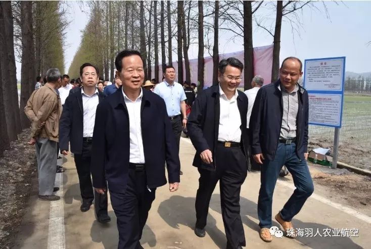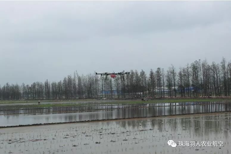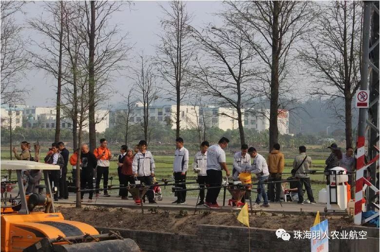在新村农田边上,农产品及技术展示长廊人气聚集。现场见到,珠海羽人农用无人机在千亩示范基地上低空翱翔,完成插播前的备耕防虫作业。