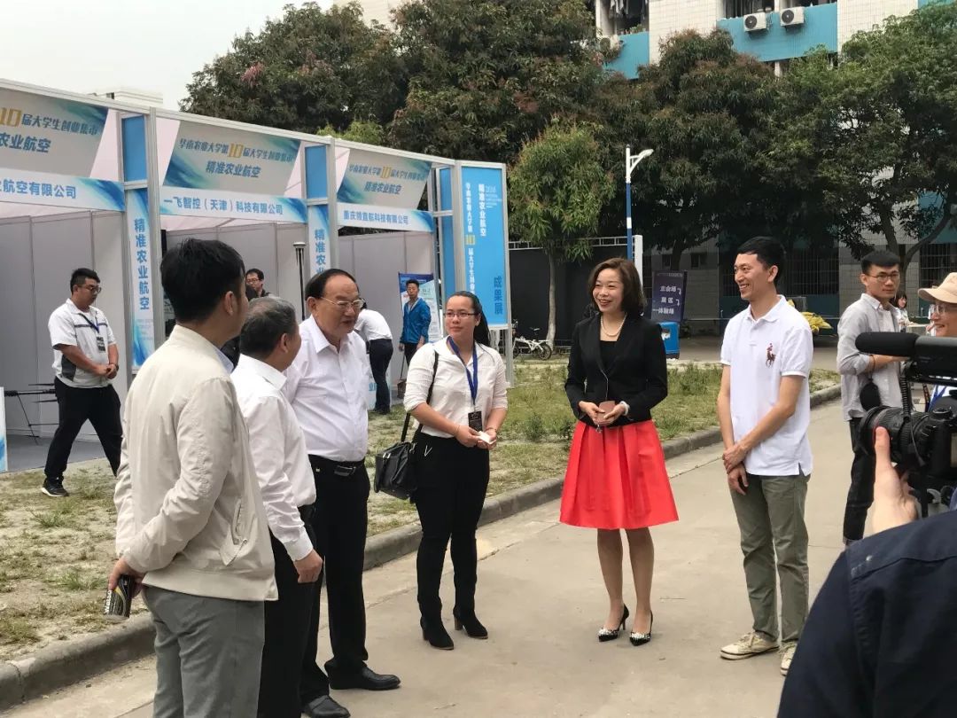 活动上,华南农业大学党委书记李大胜、团省委副书记武一婷等领导莅临活动现场,中国工程院院士罗锡文、校党委副书记陈少雄、国家“千人计划”特聘专家兰玉彬、广东省科技厅产学研处处长梁宇宁、珠海羽人农业航空有限公司副总经理蔡秀琼等知名植保无人机企业莅临华南农业大学创客空间,共聚一堂,多维解读中国无人机市场新蓝图!