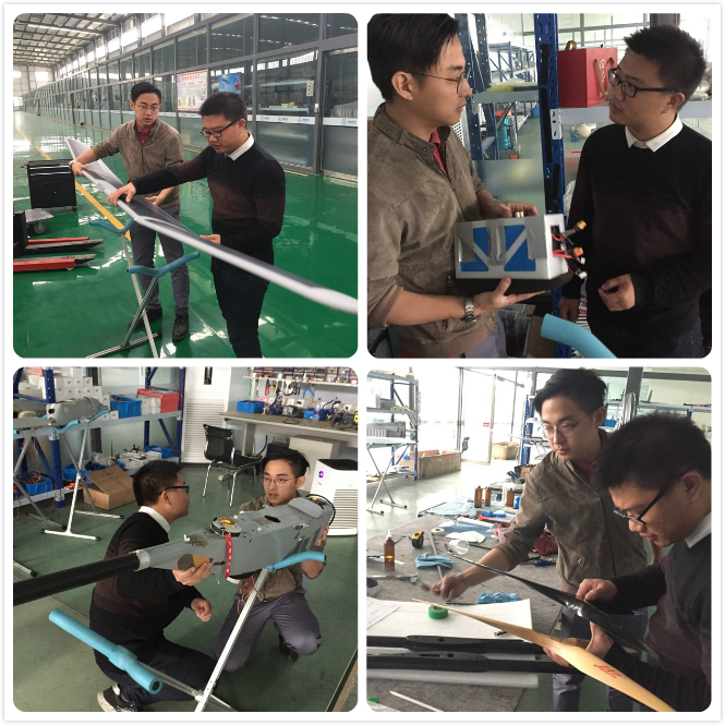 4月3日,无人机网(微信公众号“youUAV”)小编便来到了位于许昌市鄢陵县的许昌周视经纬电子科技有限公司(以下简称“周视经纬”),并受到了该公司总经理周少阳先生的热情接待。小编问周总道周视经纬的产品特色是什么呢?周总告诉我们,周视经纬目前的主打机型ZT5有电动和太阳能的,满载续航时间能够达到6-9小时,而很多人都想问了,现在锂电池的续航时间是瓶颈,周视经纬是突破这个瓶颈了吗?不是的,因为我们除了选用国内外一流的电池厂家的同时,结合我们自主研发的全新复合材料制作的机身,以及自主设计并接受专业测试过的气动化的机身和机翼结构。