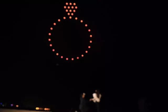 音乐轻轻响起来、灯光慢慢亮起来,无人机编队缤纷闪烁在主角上空,变换成一颗闪亮的 爱心 ,这时,男主角牵手女主角深情歌唱,倾诉爱意,浪漫而唯美。无人机编队再次变换组合,夜空中闪烁着一颗璀璨夺目的 钻戒 。男主单膝跪地,手捧戒指,向女主许下了一生的承诺。