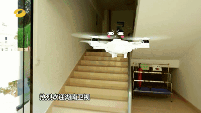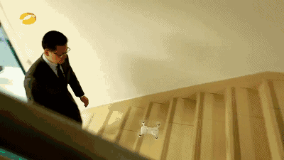 镜头前还出现了特别的“引路人”,左转、右转、上楼梯、进门,一个精致可爱的“小家伙”带领主持人来到无人机基地。这如此与众不同的引领方式,究竟是有人在远处操控无人机进行的?还是什么神秘的力量?