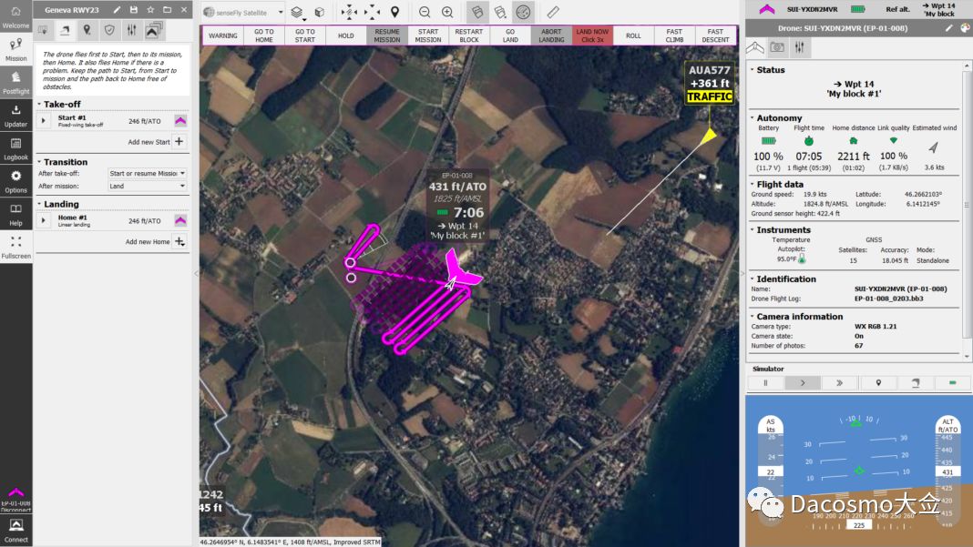 1.规划 & 监管加载senseFly S.O.D.A相机的无人机飞行 (在eMotion3.5软件中)