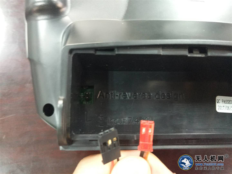 目前市面上大部分主流遥控器存在着这样的一个弊端,那就是电池插头正负极必须保证不能够接错,否则一旦打开遥控器电源开关就可能会存在烧机的风险。乐迪遥控器采用了JST通用性防反插插头,这样的设计可有效的避免一些新手玩家或者老玩家一旦疏忽插错了正负极插头而造成的不必要的损失。如果用户使用的是较为便宜的遥控器还算好,但如果是如同TUTABA等较为昂贵的设备则可以用损失惨重来形容。为了验证乐迪遥控有不惧正负极插错的功能,谢董亲自为我网人员现场演示并体验乐迪遥控器这一通用性功能,不得不说一款好的产品“细节决定成败”。