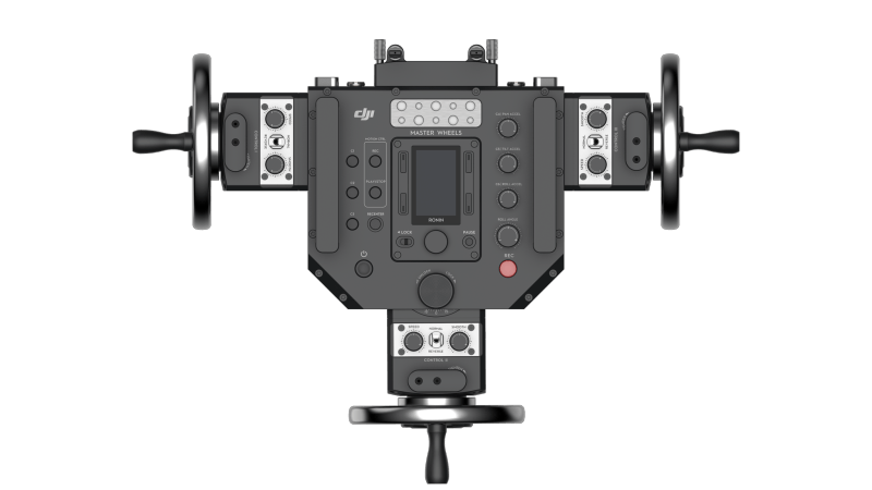 已曾曝光的 Master Wheels属于高精度、低延时、长达 18小时续航、远距离的模组化云台控制器,配备 3 个操作轮,分别控制横滚、俯仰和平移轴。操作者可在主控制台直接调节云台参数并监视设备状态。DJI 表示:「(它的)高解像度光电编码器可检测摄影师的细微操作,配合精准的控制演算法可将该运动转化为云台稳定而精确移动。」其摇轮支援轨迹重复功能,可记录多组控制轨迹,提高工作效率。
