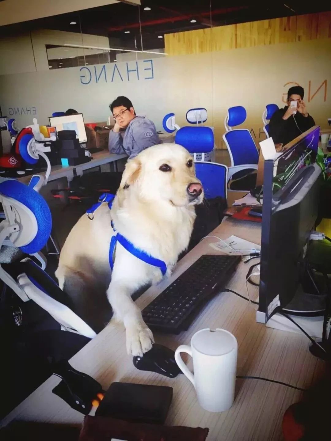不瞒大家,亿航的确有一直宠物狗,叫阿渡,是我们最亲密的小伙伴,也是大名鼎鼎的产品狗,干起活来有模有样,不信?你看!