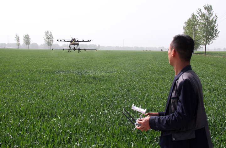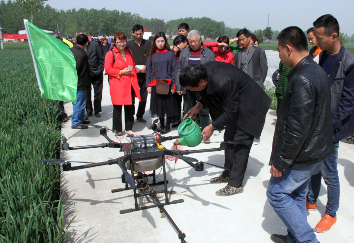 据该合作社负责人董金生介绍,“这5台无人机,是我们合作社花费了50多万元购买的,源汇区农机局依据国家农机补贴政策补贴20多万元,等于我们花了20多万买的,一台无人机一个小时可以喷洒60亩,仅4个多小时,1000多亩小麦喷洒完毕。”据悉,按照传统方式,一人一天只能完成10多亩的喷洒作业,病虫害高发期,如人力不充足,根本忙不过来。无人机的效率则高出人工许多倍,由于无人机螺旋桨产生的向下气流加速形成气雾流,增强了药液雾滴对农作物的穿透性,减轻了农药的飘移程度,每亩只需喷0.8公斤左右的药液,亩施药液量比常规减少了90%,农药有效利用率提高了15%以上,每次亩成本在10元左右,远比人工防治效果好,为大面积农作物病虫害专业化统防统治提供了有力的支持。