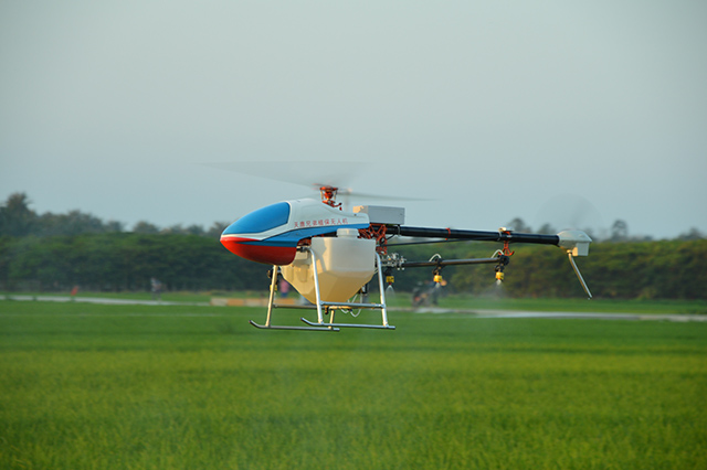公司推广的大载荷燃 油动力无人飞机田鹰-999载重量达35公斤,续航时间长,可实现完全程控飞行。该机型作业效率高,采用先进的差分GPS系统,作业定位更准确,避免多 喷、漏喷等缺陷出现,自主飞行能够在设定区域内自动飞行喷药,喷药量随飞行速度变化而调整,保证每平方米喷药量一致,智能的航线规划功能省去人工飞行的劳 累。同时具有故障自检测功能,维护操作简单易学。