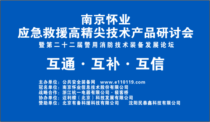 2018年04月18日,由公共安全装备网主办的“南京怀业●应急救援高精尖技术产品研讨会暨第22届警用消防技术装备发展论坛”在裕龙国际大酒店召开。