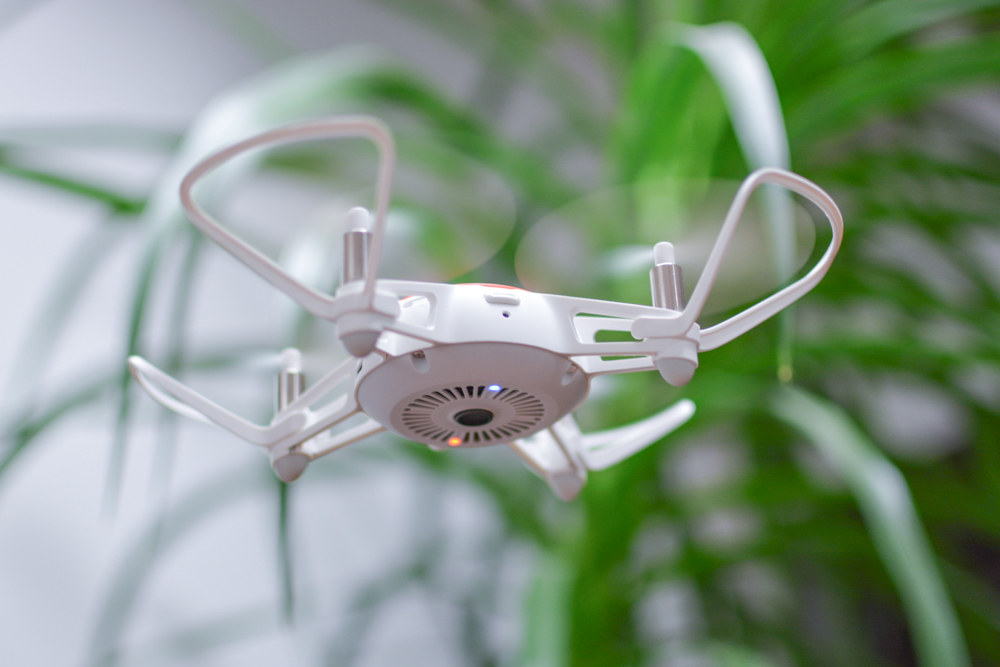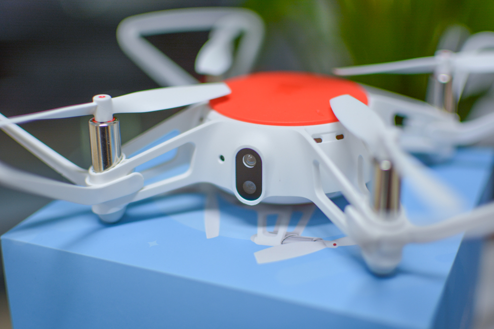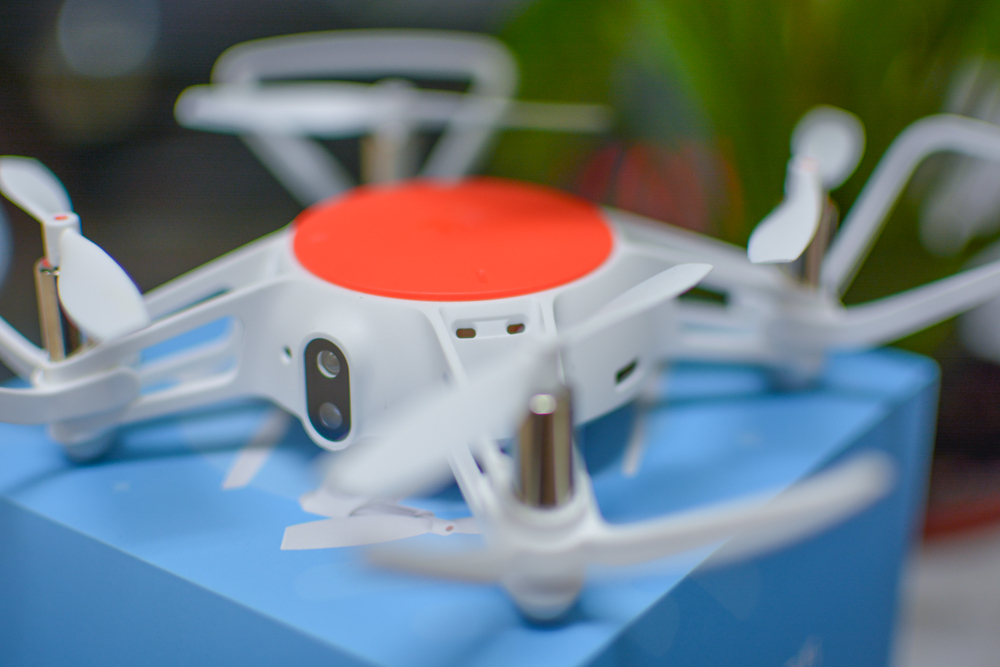 上图为小飞机起飞时的样子,当我们将手放在下面时能够明显感受到其螺旋桨产生的向下的风流。当有物体接近时,小飞机会移动位置。
