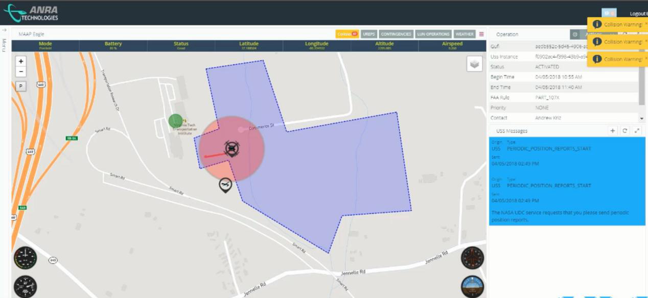 无人机必须看到传达和解除冲突的方法越来越精确,这就是现在正在成功测试的内容。这不仅仅是像我们以前在自动化无人机系统中看到的那样的感知和避免技术。在这些测试中,研究人员使用Echodyne提供的无人驾驶安装紧凑型雷达系统。这些系统可以显示障碍物的距离和方向,并且它们仍然在恶劣的天气下工作。此外,参与者还测试了通常用于地面智能交通系统的专用短程通信或DSRC无线电。ANRA的DroneUSS UTM系统将雷达,DSRC无线电以及无人机遥测功能集成到交通管理平台中。这个想法是像ANRA这样的USS(UAS服务提供商)可以作为商业无人机运营商与FAA或全球其他航空管理机构之间的中介机构;现在ANRA是领先的USS之一,除了协作解除冲突之外,它还集成了DSRC无线电,ADS-B和雷达信息等感知和避免功能。
