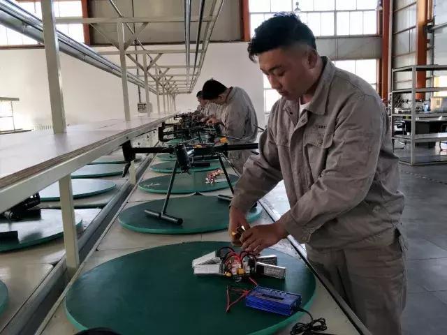 车间里,数名工人站在组装生产线前,紧张而专注地将一个个零部件组装起来,机身、机臂、电机、桨叶、飞控系统……渐渐地,一个四轴八旋翼无人机露出了”雏形”,在他们身后的成品架上,一架架无人机整齐有序地摆放着,这里是内蒙古中科世源生态科技有限公司,自今年3 月入驻鄂尔多斯装备制造基地以来,已完成70 余架无人机的生产组装任务。