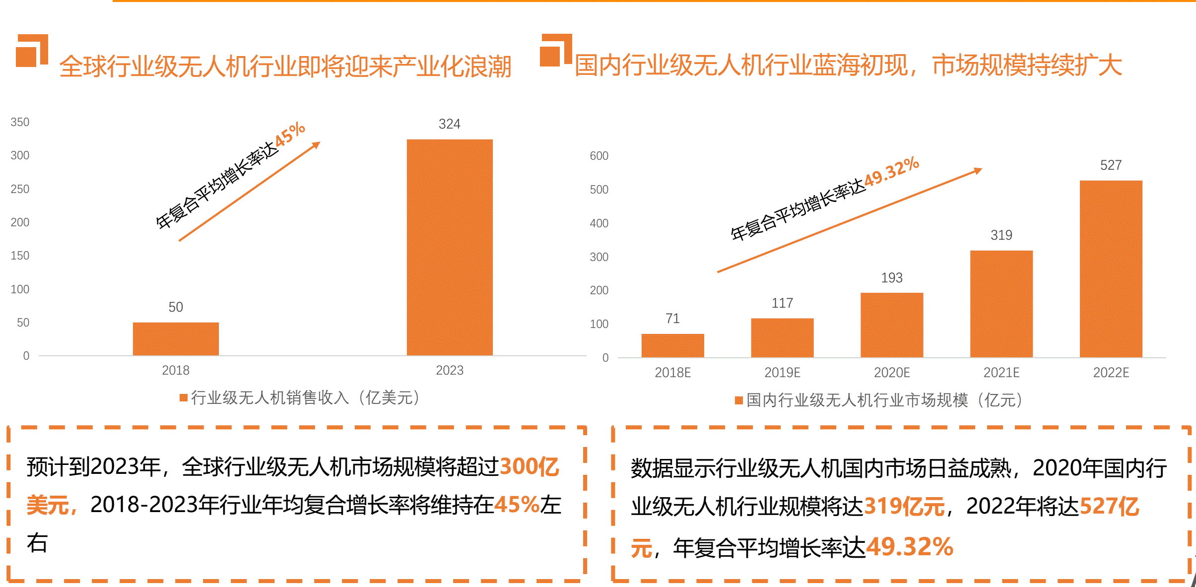 我们知道,无人机除了消费级市场,将来更大的空间在于各种行业应用,而行业应用有非常多的细分领域,影视、农业、能源、交通、公安等等大大小小数百个行业都有需求。但是,“行业无人机是不可能用通用无人机去包打天下的。”