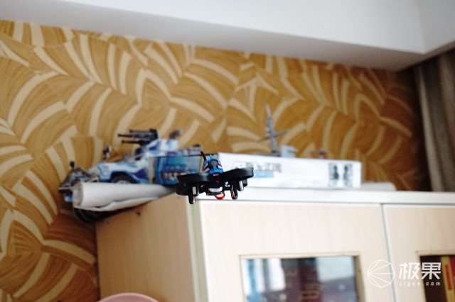 大概试玩了几天后,已经可以在室内熟练的飞行了,而且还可以做空中翻滚动作,因为之前有一架亿航GHOSTDRONE2.0,也带有FPV眼镜,但因为是手机当作遥控器,飞行体验很多时候都还不如Shark,更不要说做翻滚动作了。