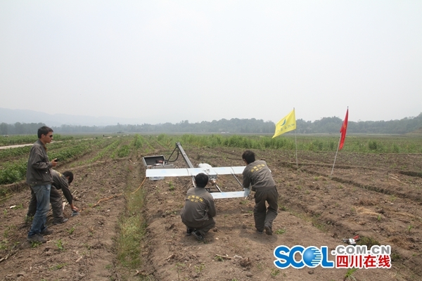 2013年“4•20”芦山7.0级地震应急测绘保障,无人机准备弹射起飞