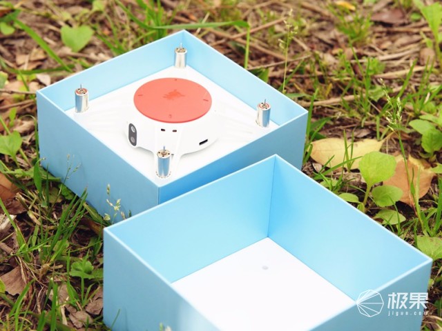 从外包装开始说起,蓝色包装盒,符合小米一贯风格,玩具产品大多数外包装采用蓝色,同时印有产品图案,看一眼就知道这是一款溜得飞起的小飞机,由于产品本身很小巧,因此即使有外包装也能单手握持。