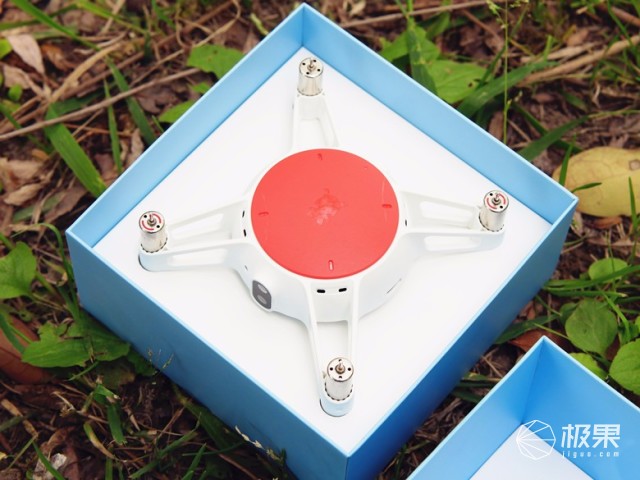 打开外包装,小飞机就静静的放置其中,为了防止运输途中的损伤,在顶盖的内盖内置了海绵,同时对小飞机的4个螺旋桨支架位置也做了限位固定。
