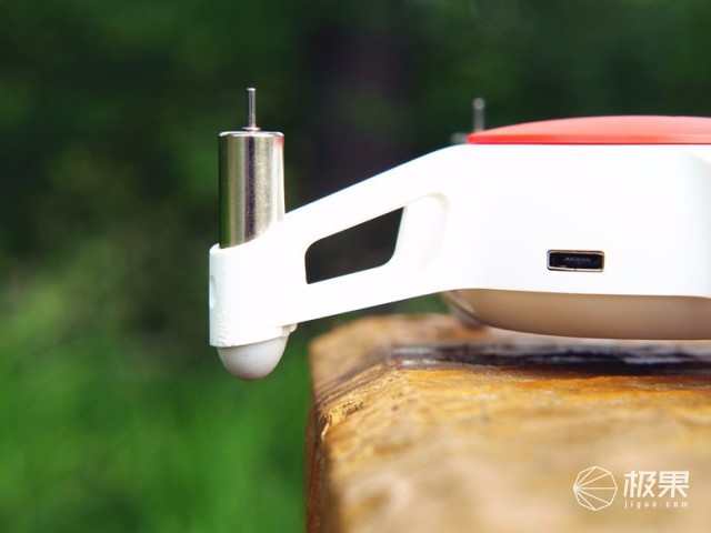 顶部橙色区域其实就是小飞机的内置电池部分,可以方便更换,可用随机附带的USB数据线接电源适配器(并没标配电源适配器,可以用手机的)或者移动电源充电,充满大约需要60分钟时间,而小飞机的电池容量为 920mAh,理论续航时间可达 10 分钟,时间使用大约在8-9分钟。