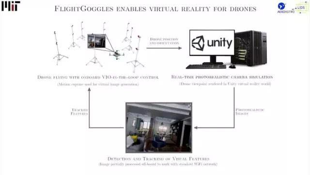 最近,来自麻省理工学院的工程师表示开发了一种无人机虚拟现实训练系统Flight Goggle,能够让无人机在虚空中“看到”丰富的虚拟环境,从而安全的模拟无人机自动飞行。当飞行器快速飞行,并且进行着高吞吐量的计算时,环境中特别轻微的改变都会导致无人机的碰撞事故,所以我们很难在真实环境中训练无人机,而需要一个虚拟现实的环境。