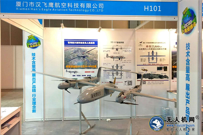 5月23-25日,在“第十八届上海国际公共安全产品博览会暨上海国际警用及安防无人系统博览会”上,警用安防类无人机则是此次展会的一大亮点,其中包括多旋翼、固定翼、复合翼、反无人机系统等不胜枚举。厦门汉飞鹰航空公司(以下简称:汉飞鹰)携高性能、长航时海骑兵SD-40垂直起降无人机重磅亮相。