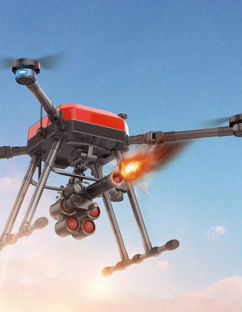 除了搭载火箭发射器用于高空灭火外,FE15也能搭载垂直发射器。垂直投掷灭火弹,特别适合于森林灭火。平时对森林进行大范围的防火侦查,当发现森林某处有着火点或初燃烟雾时,无人机到达上空垂直投掷灭火弹,进行森林灭火。