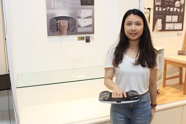 另一款《导航无人机 – Guidrone》作品,是把无人机结合视障辅助工具,作为视障者的「盲公竹」使用。无人机具有视觉辨识技术和超声波技术,前者会用于影像监控,除了有障障功能,当侦测到异常状况会发出警示;后者则用于测量地面高低起伏。这款作品获得德国 iF 设计奖 Design Talent Award 奖项,陈同学表示设计这项作品,缘于在捷运上看到视障者由于环境没有导航,行走相当不便,所以想设计出令视障者出门更安全的产品。