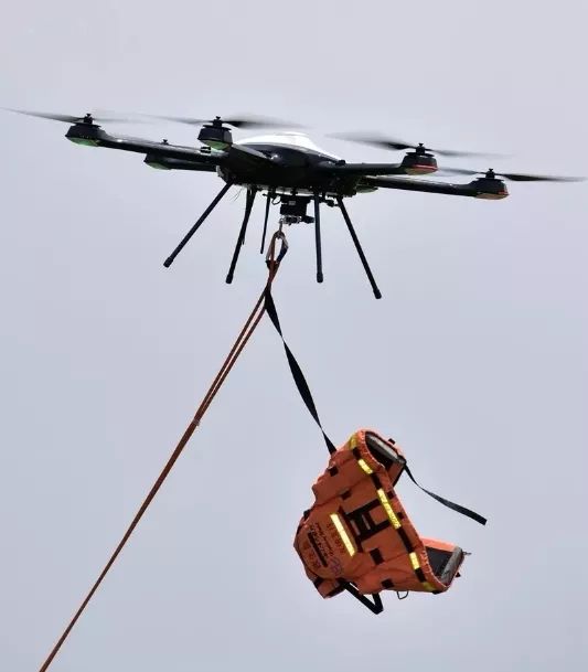 ▲丽水市公安局使用海康威视“雄鹰”系列六旋翼飞行器抛投救生衣