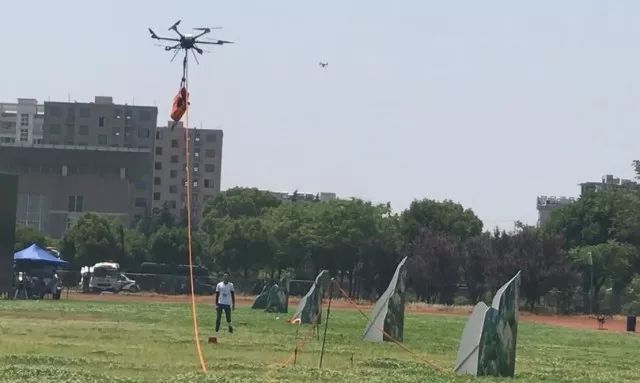 温州市公安局使用海康威视“雄鹰”系列四旋翼飞行器搭载海康威视喊话器挂载完成高空喊话,搭载海康威视抛投器挂载抛撒驱逐粉、抛投万能钩,准确移除疑似爆炸物并将其转移至疏散地带投放。