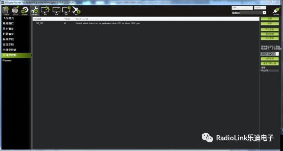 飞控默认在定高模式和留待模式下,避障功能自动打开,切回自稳时,避障功能自动关闭。但是如果想实时通过遥控器来开启或关闭避障功能,需要进行此项设置。如果想只在定高和留待模式下,自动开启避障功能,可以跳过此项设置。