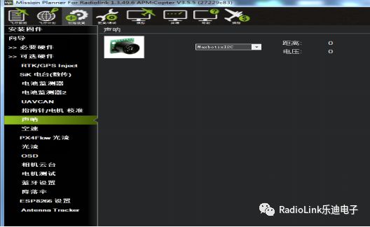 进入-初始设置界面,点击左侧可选硬件,再点击声呐,在右侧会出现声呐界面。在右侧的选框中,点击下拉,选中“MaxbotixI2C”或者“LightWareI2C”,如下图所示: