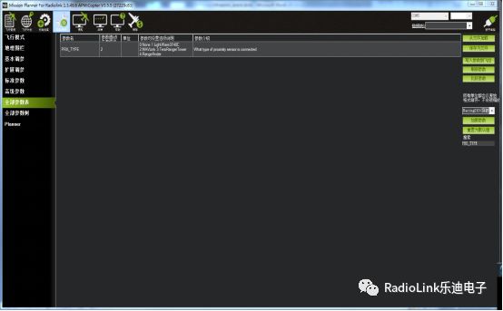 3.1模块选择(pixhawk支持4种避障模块,下面通过设置PRX_TYPE的值来选择本模块作为避障模块)
