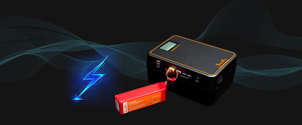 一块5200毫安的航模电池用平衡充电器充满大概需要一个半小时。DP 45K只需要35分钟左右就能将其轻松充满。充电最大电流达到8A,充电速度足足提升了2倍。它有两个USB接口可以支持两个移动设备同时以3A的电流快充,减少了手机等移动设备充电等待的时间。