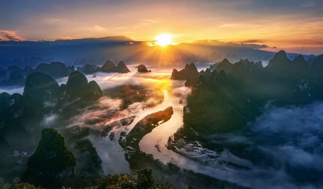 说桂林山水的精华在阳朔,这句话其实只能算是说了一半,范围再往小了说,漓江的精华,应该是在兴坪镇。在这段漓江上,山水之势大开大合,非制高点不能囊括。而相公山在兴坪镇境内,蜿蜒数百里漓江,在此回眸一笑。一年四季,一天二十四小时,这里的风光随时在变化,面貌是非常丰富的。