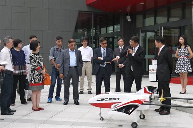 经纬航太董事长罗正方(右三)介绍ALIAS无人机。(政大提供)