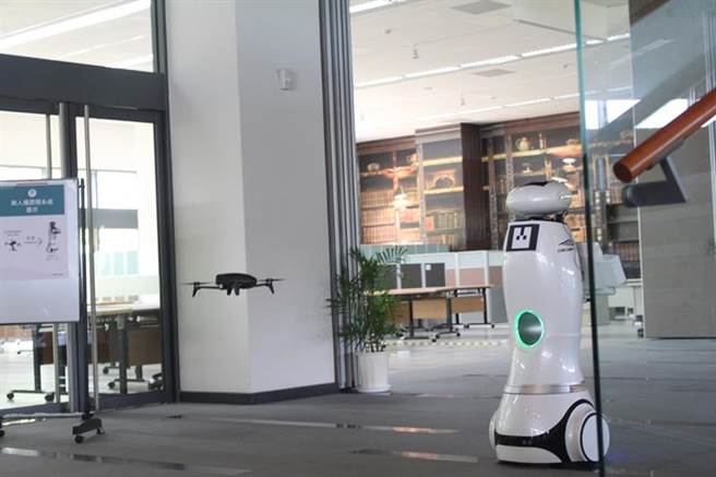 机器人小智(右)与无人机parrot_bebop_2(左)。(政大提供)