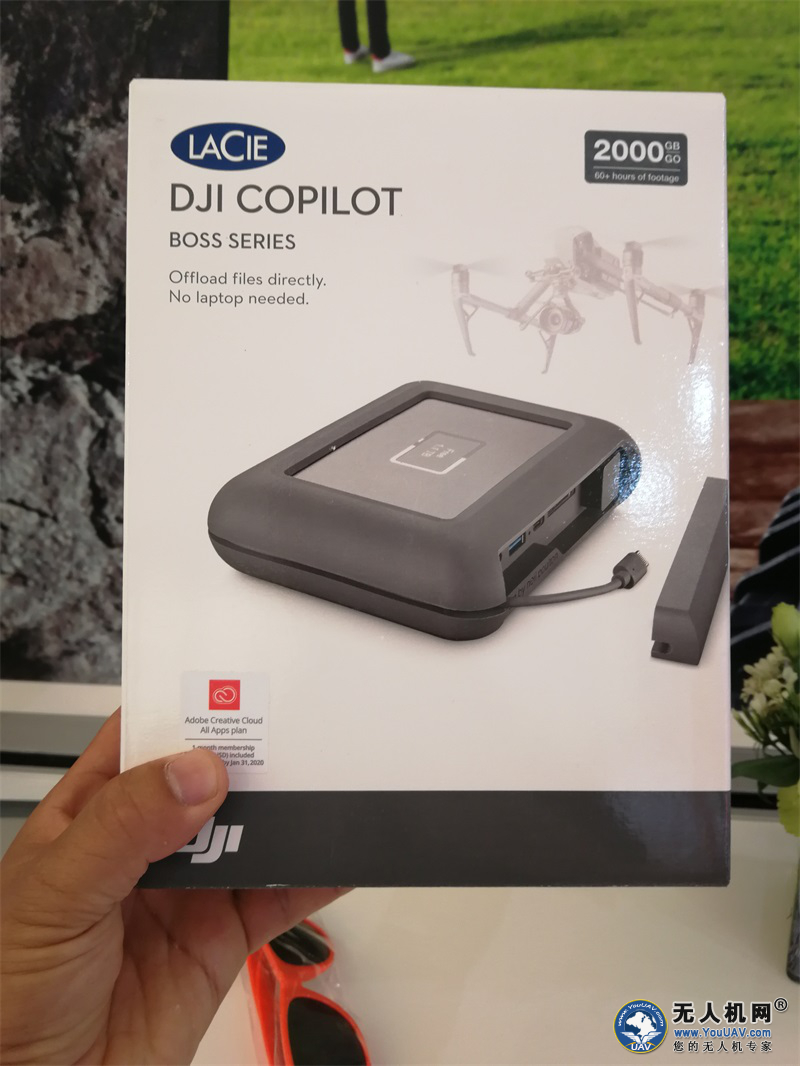 这是一款可以为那些在野外执行空中影像作业的无人机用户量身定做的一款具有魔幻版的产品。有几点非常重要,“Lacie DJI Copilot”硬盘具备防水、防压、防尘以及在各种恶劣的工况下工作。同时还有密码保护,最大容量可达2TB。