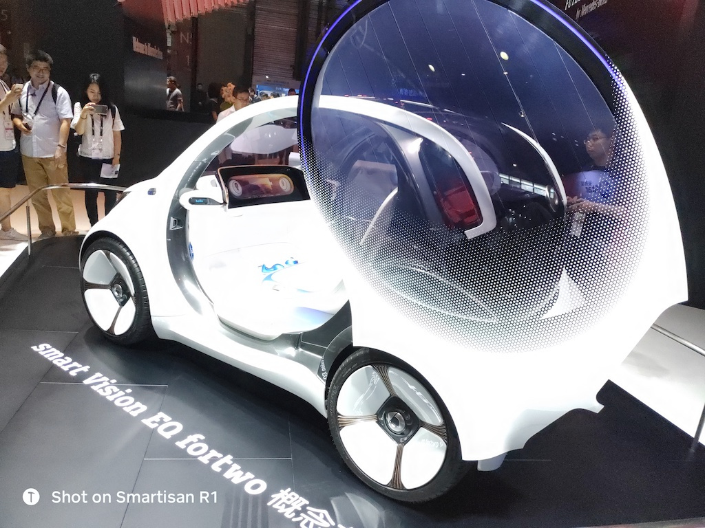 奔驰展区带来了最吸粉的自动驾驶概念车型 Smart Vision EQ fortwo。据了解,这款萌系 Smart 装备了 L5 级别的自动驾驶系统(不需要司机了),主要面向的是共享汽车市场。未来我们只需要拿出手机预约上车地点与目的地,Smart Vision EQ fortwo 就会自动开到我们身边,甚至还能寻找拼车伙伴。