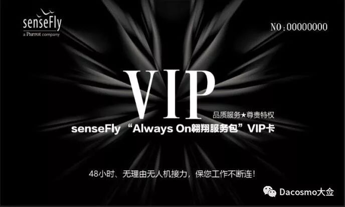 除48小时无理由无人机接力之外,senseFly的“Always On翱翔服务包”还将eBee Plus的保修期从一年延长至两年, 并还包含其它免费服务,例如免费更换电池等。购买此服务包的用户将获得一张senseFly“Always On翱翔服务包”服务专项VIP卡,凭此卡尊享各项专业服务!