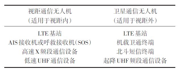 系统由太阳能无人机平台分系统、机载通信载荷分系统、地面通信载荷分系统、机载指挥控制分系统、地面指挥控制分系统、地面支援保障分系统组成。系统包含视距通信无人机和卫星通信无人机两架无人机,根据不同任务场景需求,配置有不同载荷(表1),实现近/远海广域通信覆盖。