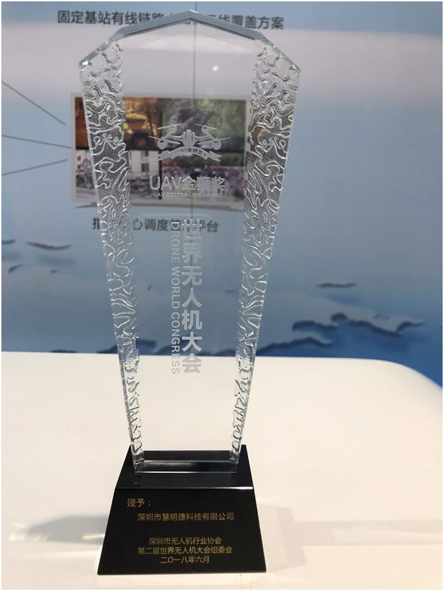 展会现场,慧明捷无人机凭借产品优秀的性能及产品的先进性、领创性,获得了行业专家一致的高度认可,无人机行业协会向慧明捷颁发了金狮奖。