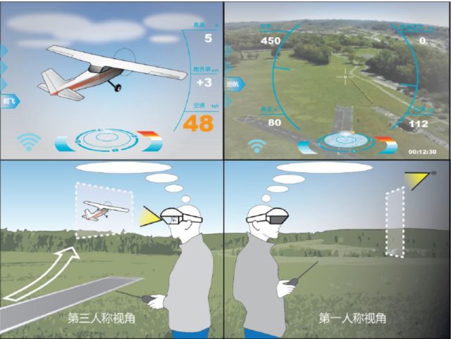 另外,在操纵多旋翼无人机开展塔架巡检时,一般需要两个人或更多人同时开展工作,一人操纵飞机,另外一人进行视频图像观察,既无人机操纵者无法时刻了解到无人机与塔架之间的近距离关系,对准确获取被观测对象的图像存在一定的障碍。为了解决该问题,在电力巡检领域首次在天璇II平台上融合了多功能头戴设备。该头戴设备可通过快速切换,使得飞手能够在地面直视飞机状态,也可切换至飞机上的摄像装置,使得飞手可具备第三视角和第一视角的操作状态。在后续的电力巡检应用中,将利用头戴设备和体感运动结合,同步实现对机载云台的控制,进一步提高巡检效率。