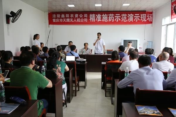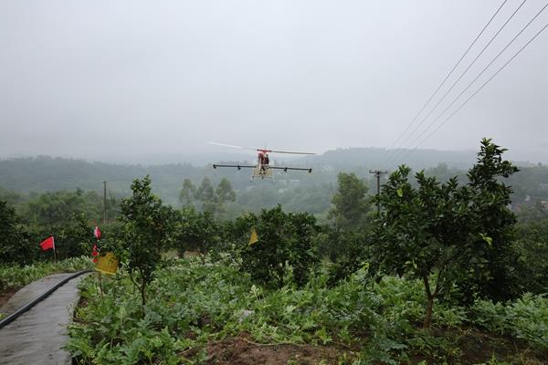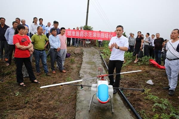 6月22日,涪陵义和镇时岭村,鑫阳农资公司和天鹰无人机公司为当地的农业企业专业大户和农户们表演了一场植保无人机精准施药飞机秀。区农机办、果品办等相关人员现场指导。